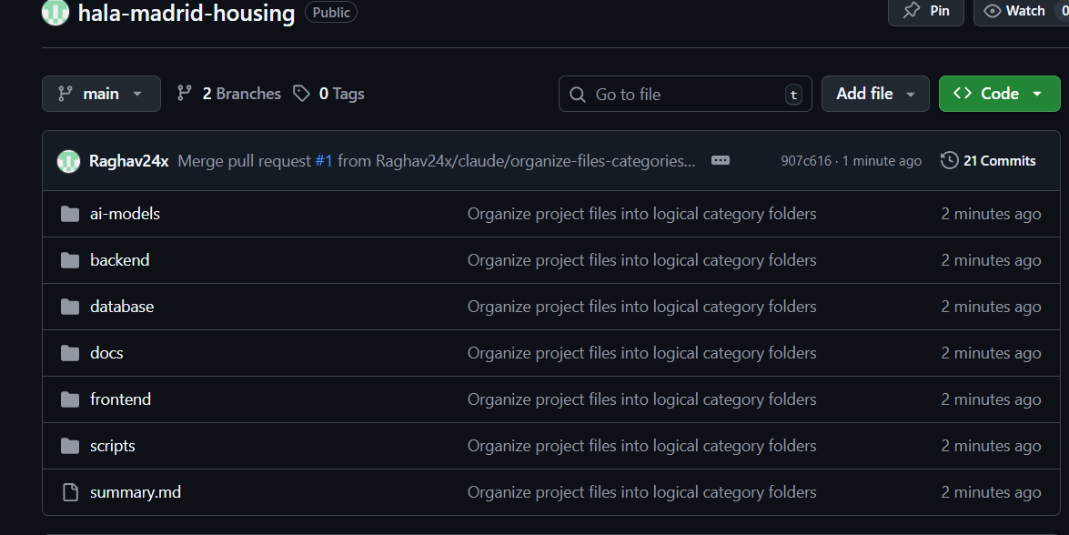 For this, I picked an old product of a local housing platform and used Claude Code to organize my files in my GitHub repository.