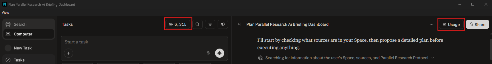 Computer spins up sub-agents, assigns models, and runs a full cloud sandbox for every task. That overhead costs credits whether the task needed it or not. Any research question that doesn't require parallel multi-source processing, tool integration, or structured file output belongs in Pro Search or Deep Research instead — both of which consume credits from a separate pool.